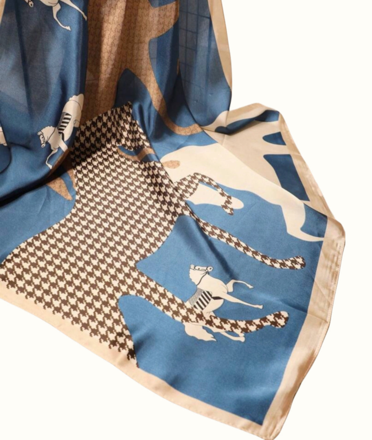 This elegant scarf features a beautiful horse pattern, adding a touch of sophistication and luxury to any outfit. Expertly crafted from high quality material it is both soft and durable. Perfect for adding a unique and stylish touch to your wardrobe.