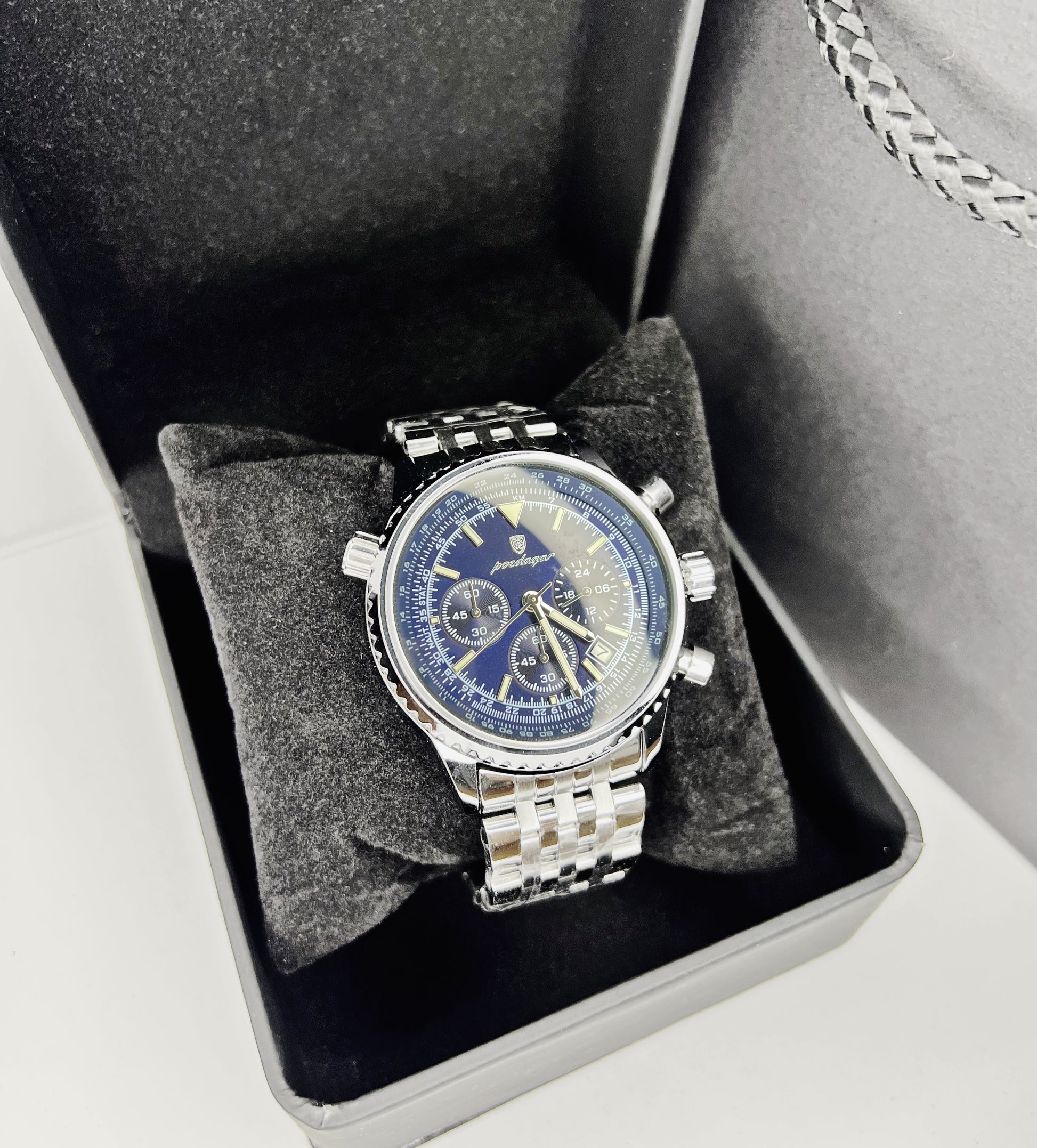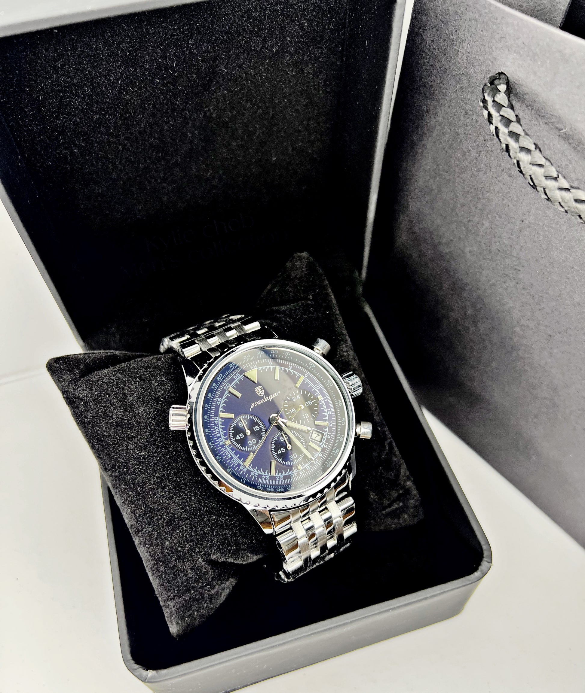 Elegant and captivating, Conrad v8 brings depth and character to the collection with its bold blue face and full stainless steel build. Whether styled casually or formally, its blue dial adds a refined touch that sets it apart.