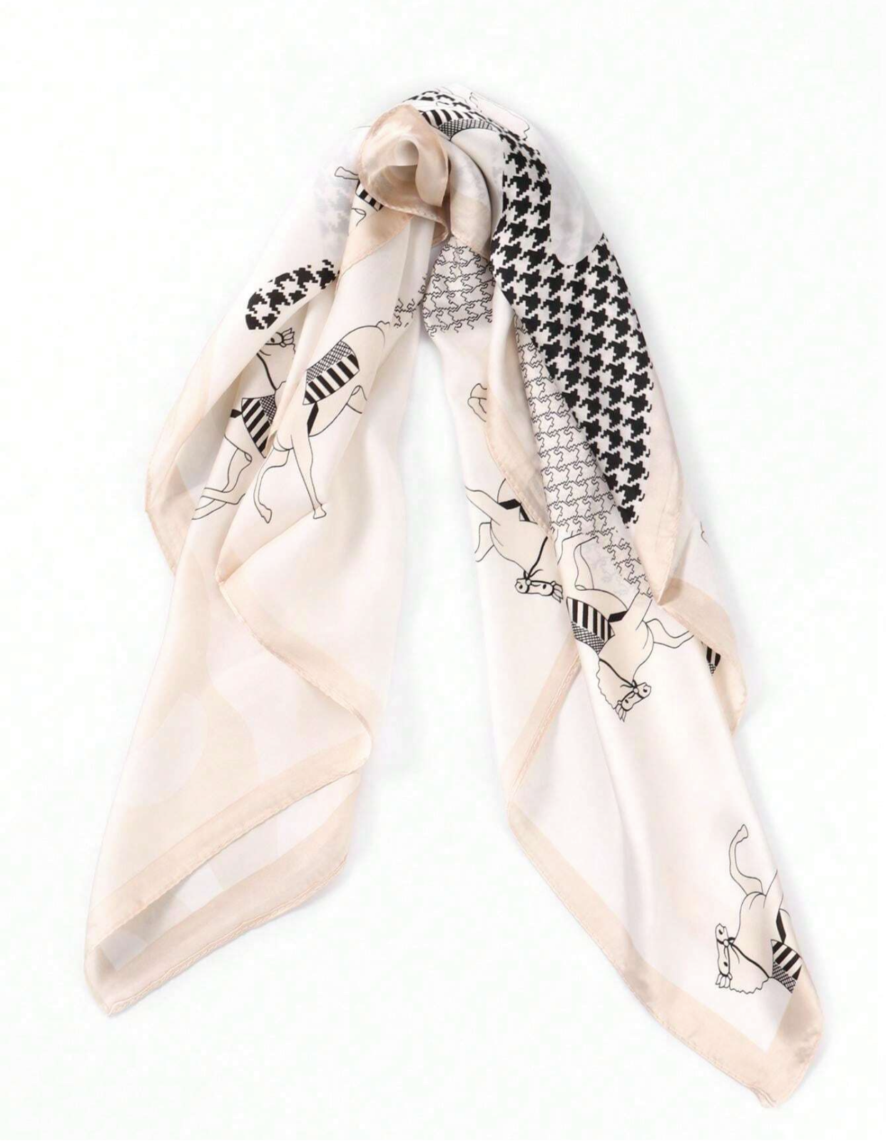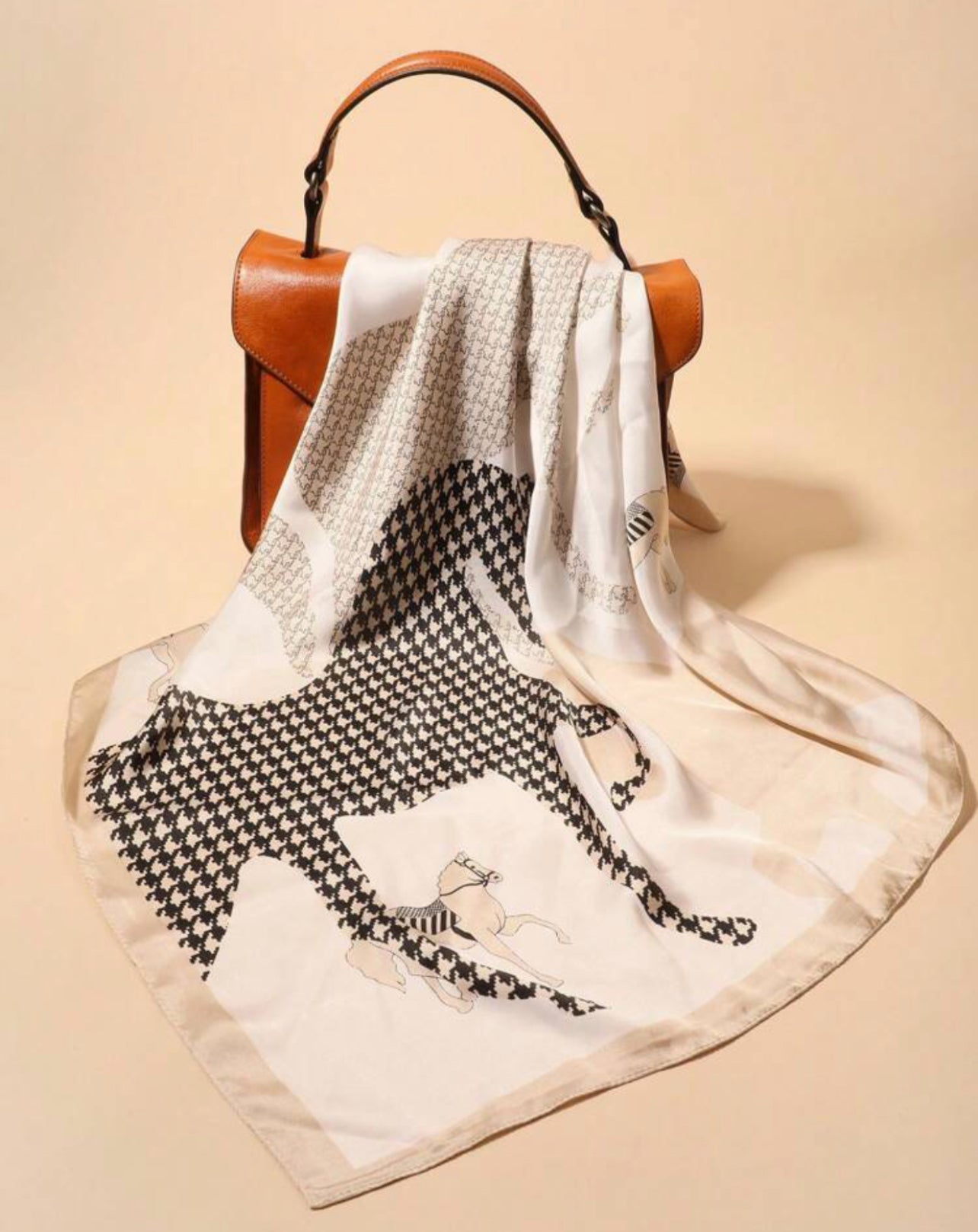 This elegant scarf features a beautiful horse pattern, adding a touch of sophistication and luxury to any outfit. Expertly crafted from high quality material it is both soft and durable. Perfect for adding a unique and stylish touch to your wardrobe.