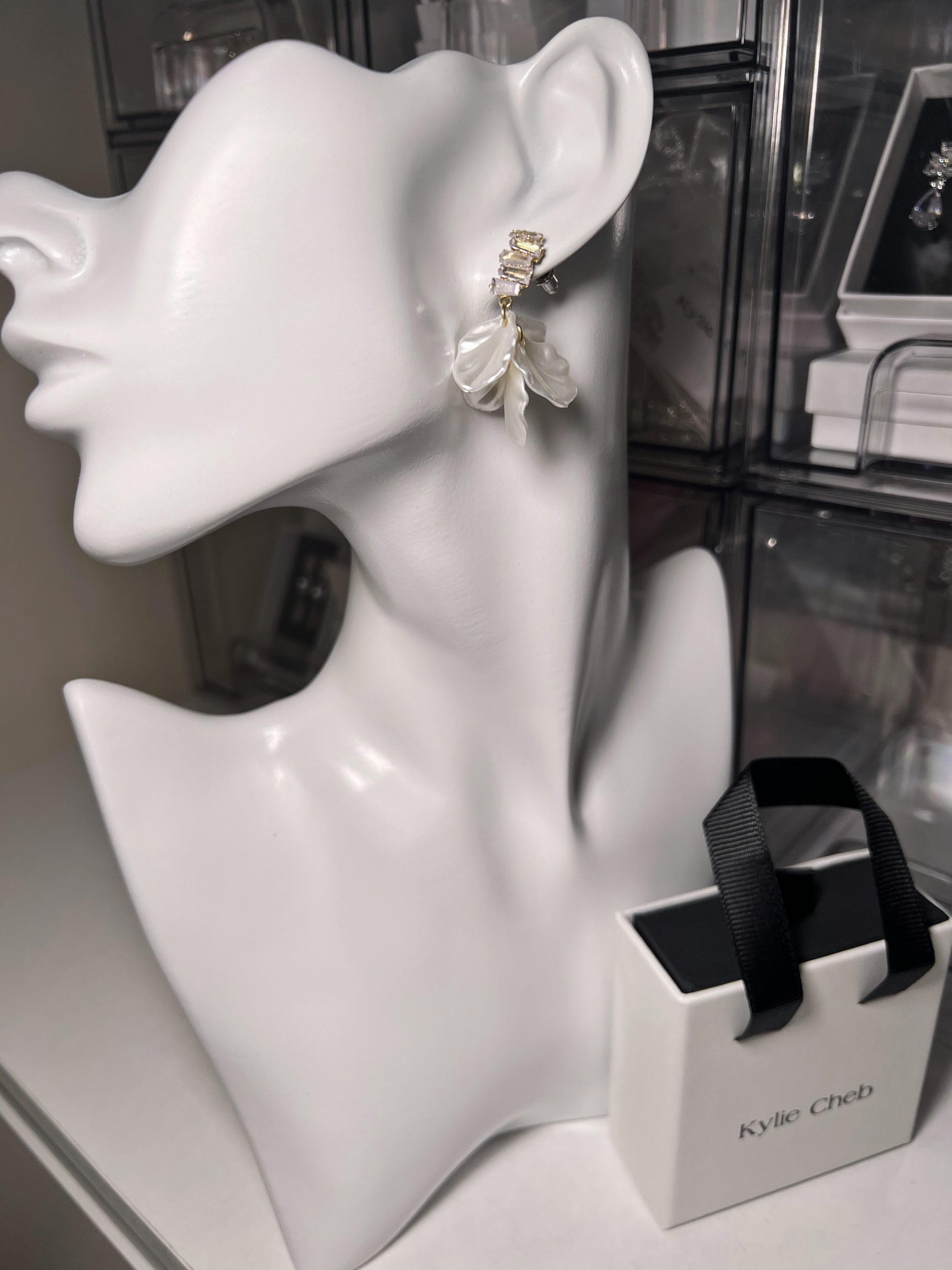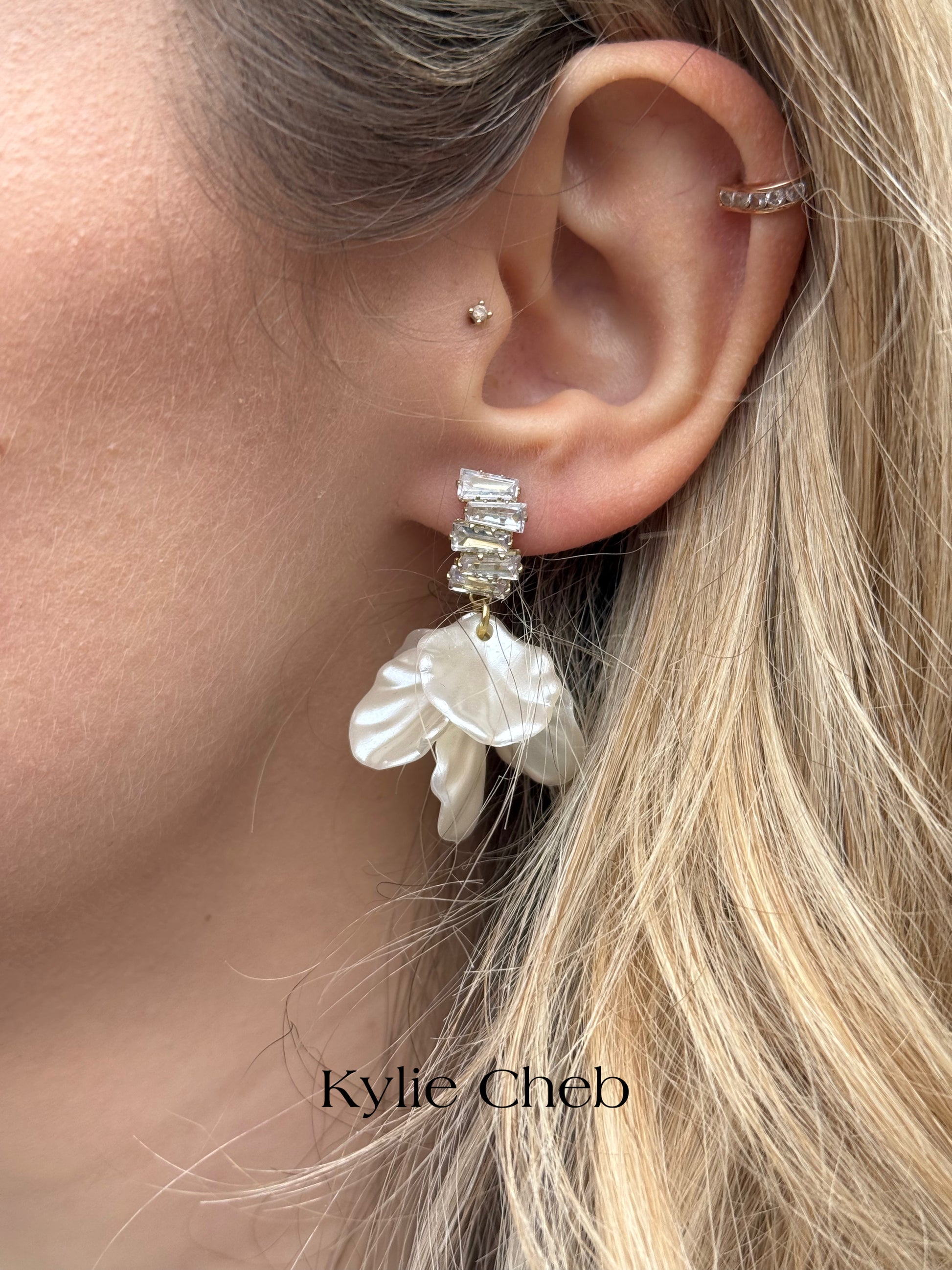 These elegant bridal earrings, part of our beautiful collection, feature a stunning diamond crystal drop design with shimmering pearl shell beads. The perfect accessory for any bride, these earrings add a touch of glamour and sophistication to any wedding ensemble. Elevate your bridal look with the Kayla Bridal Earrings.