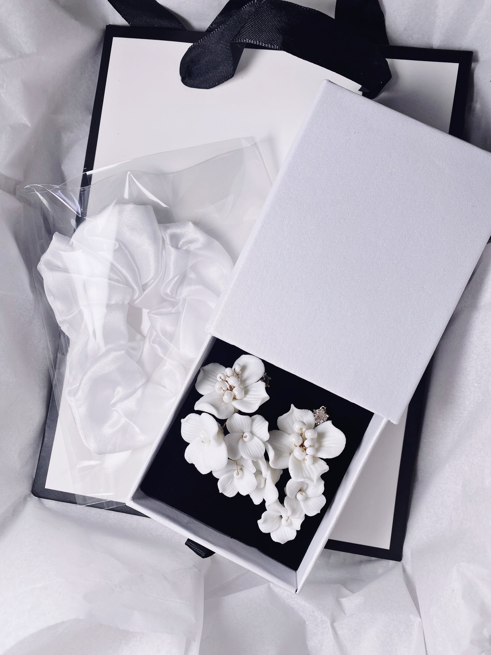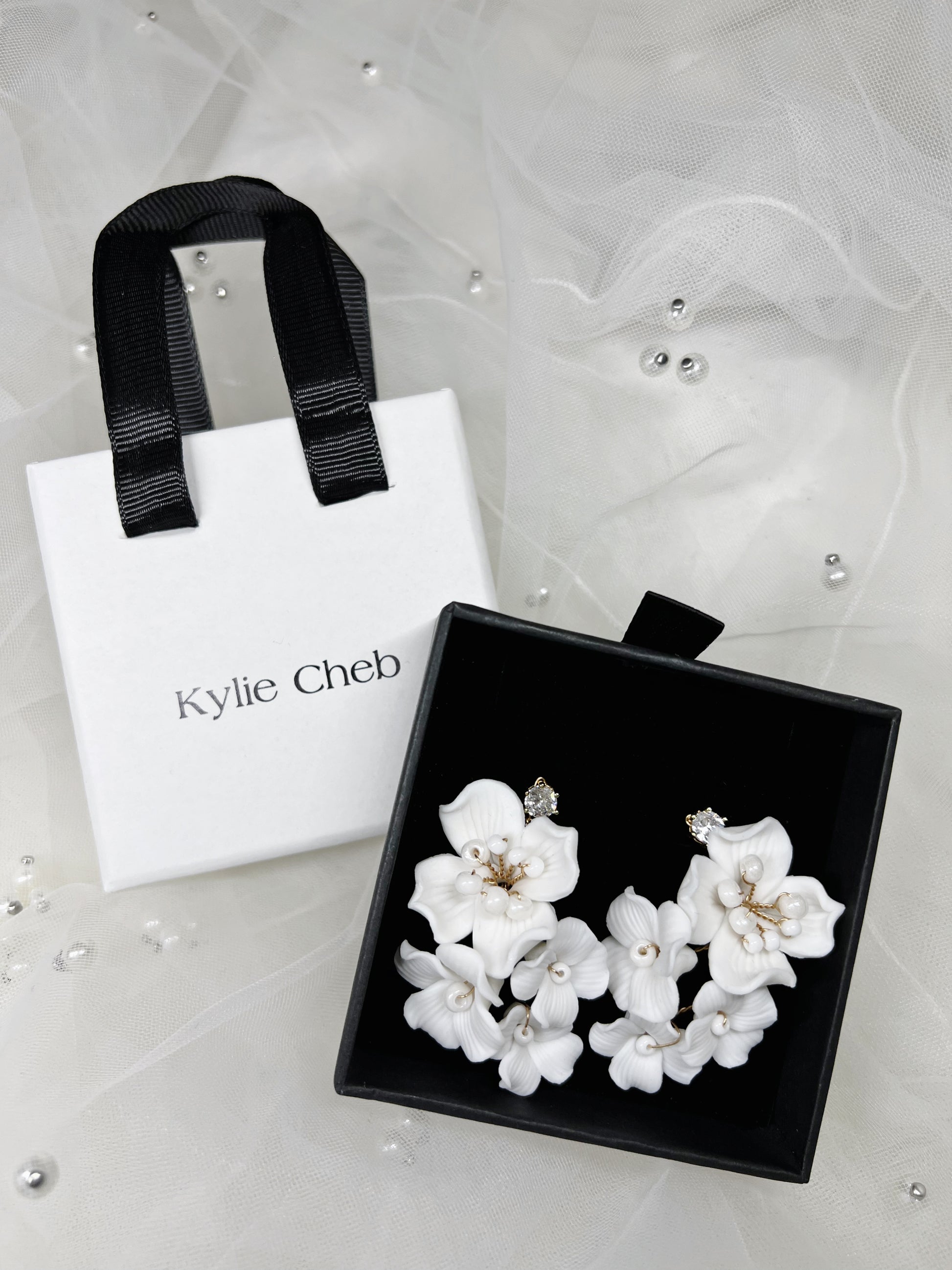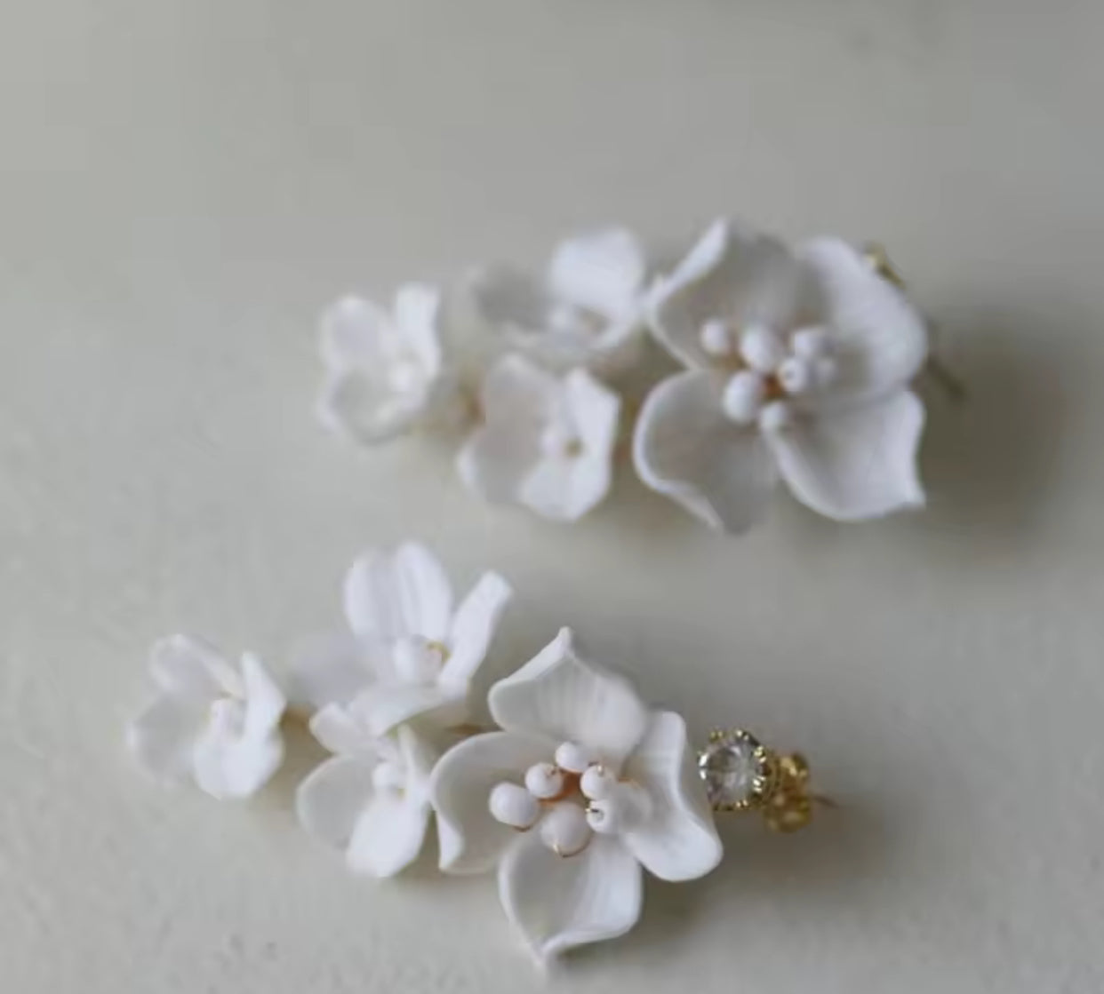 These elegant bridal earrings, part of our beautiful collection, feature a stunning porcelain flower drop design with shimmering pearl beads. The perfect accessory for any bride, these earrings add a touch of glamour and sophistication to any wedding ensemble. Elevate your bridal look with the Lucy porcelain flower Bridal Earrings.