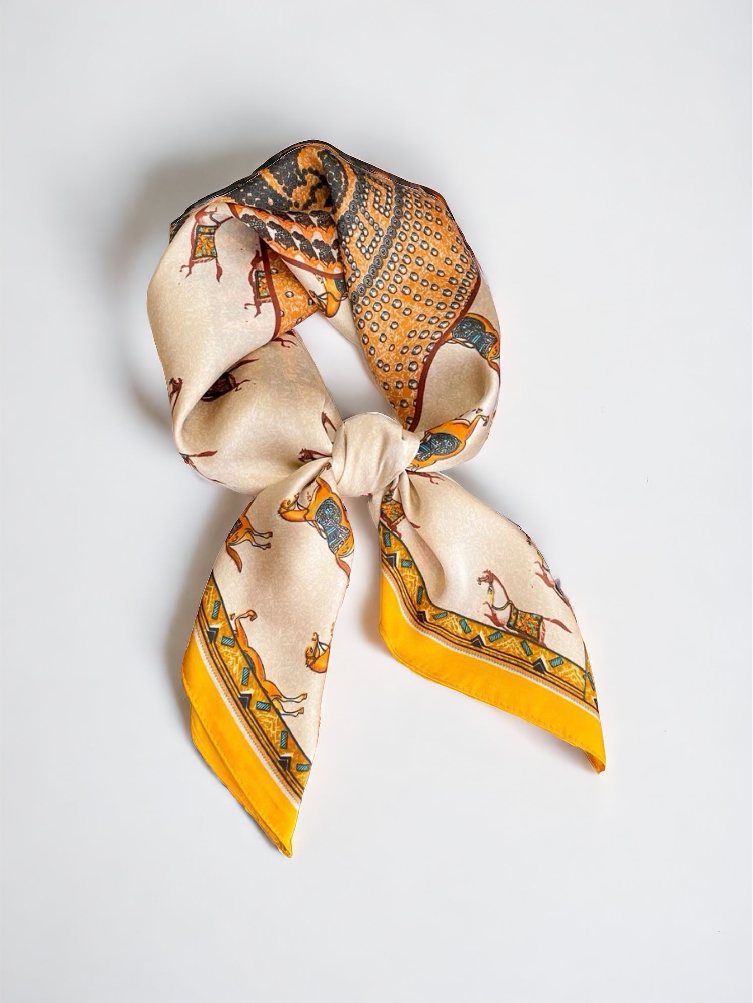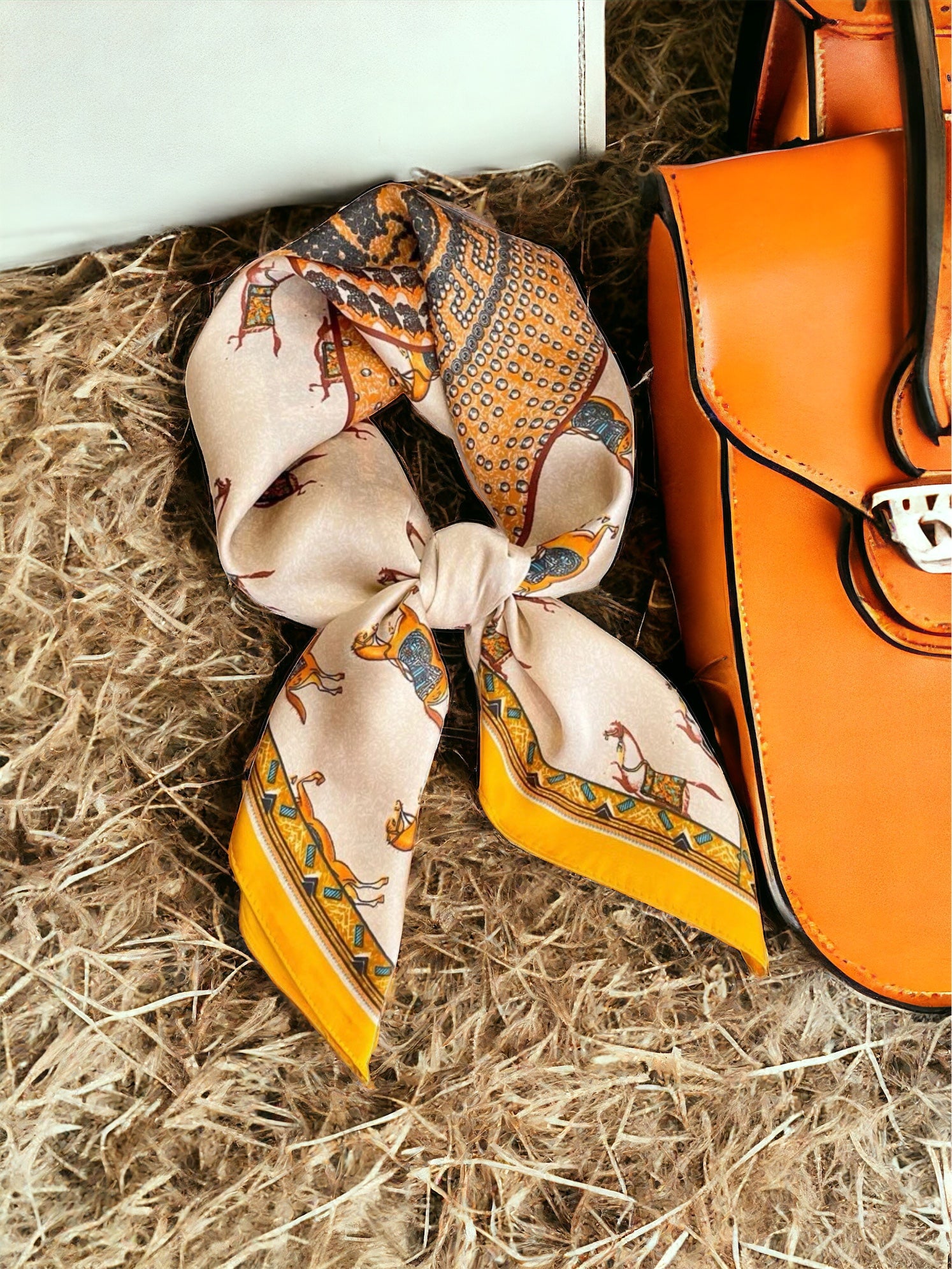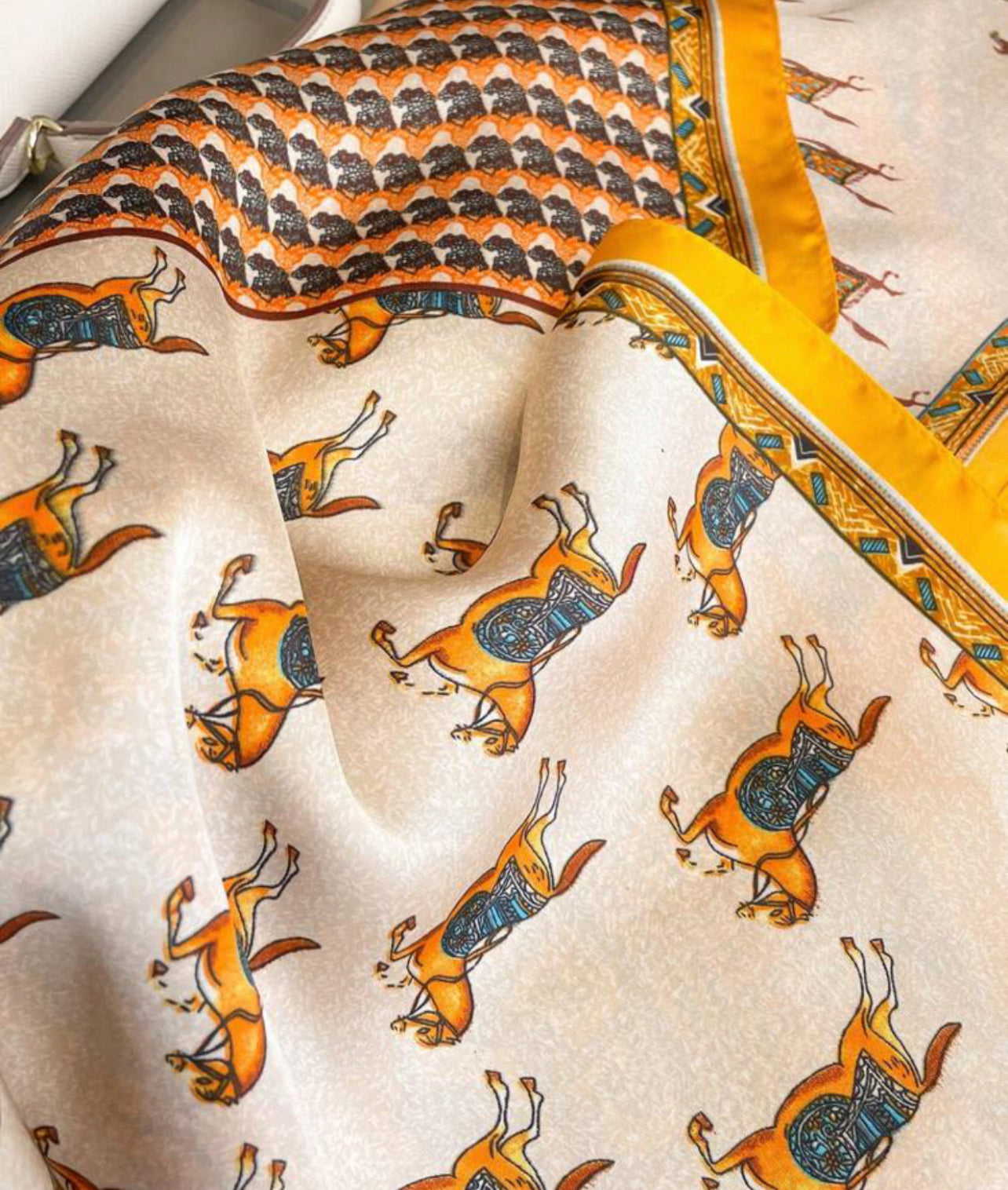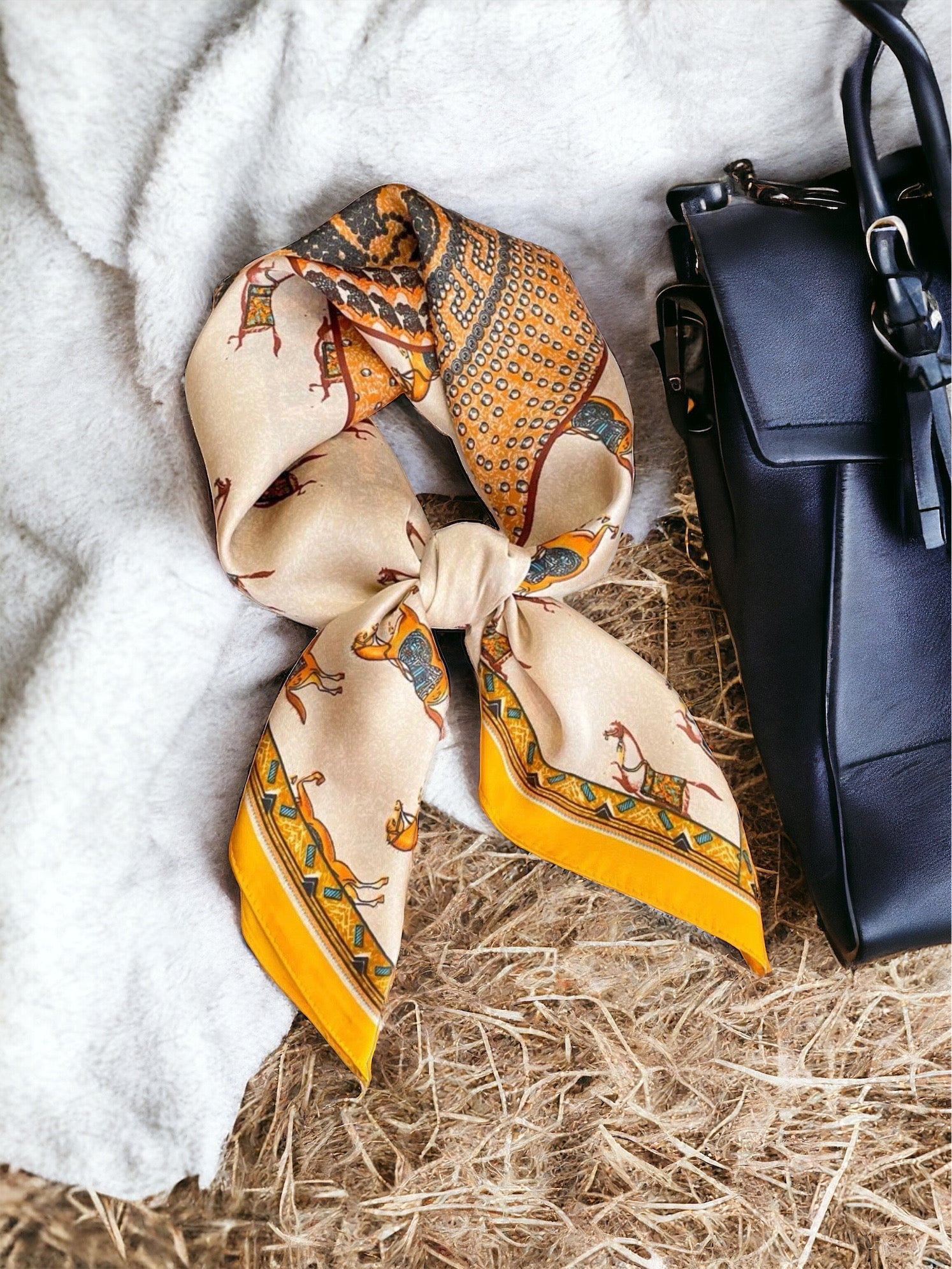 This elegant scarf features a beautiful horse pattern, adding a touch of sophistication and luxury to any outfit. Expertly crafted from high quality material it is both soft and durable. Perfect for adding a unique and stylish touch to your wardrobe.
