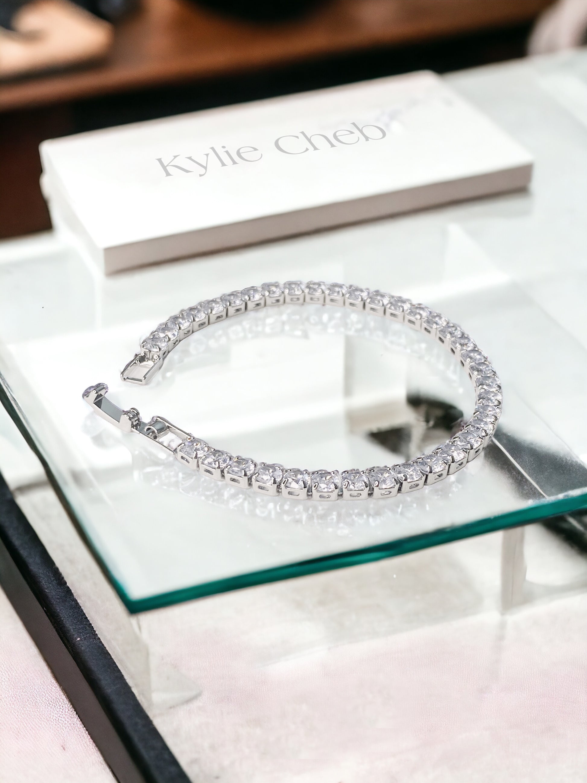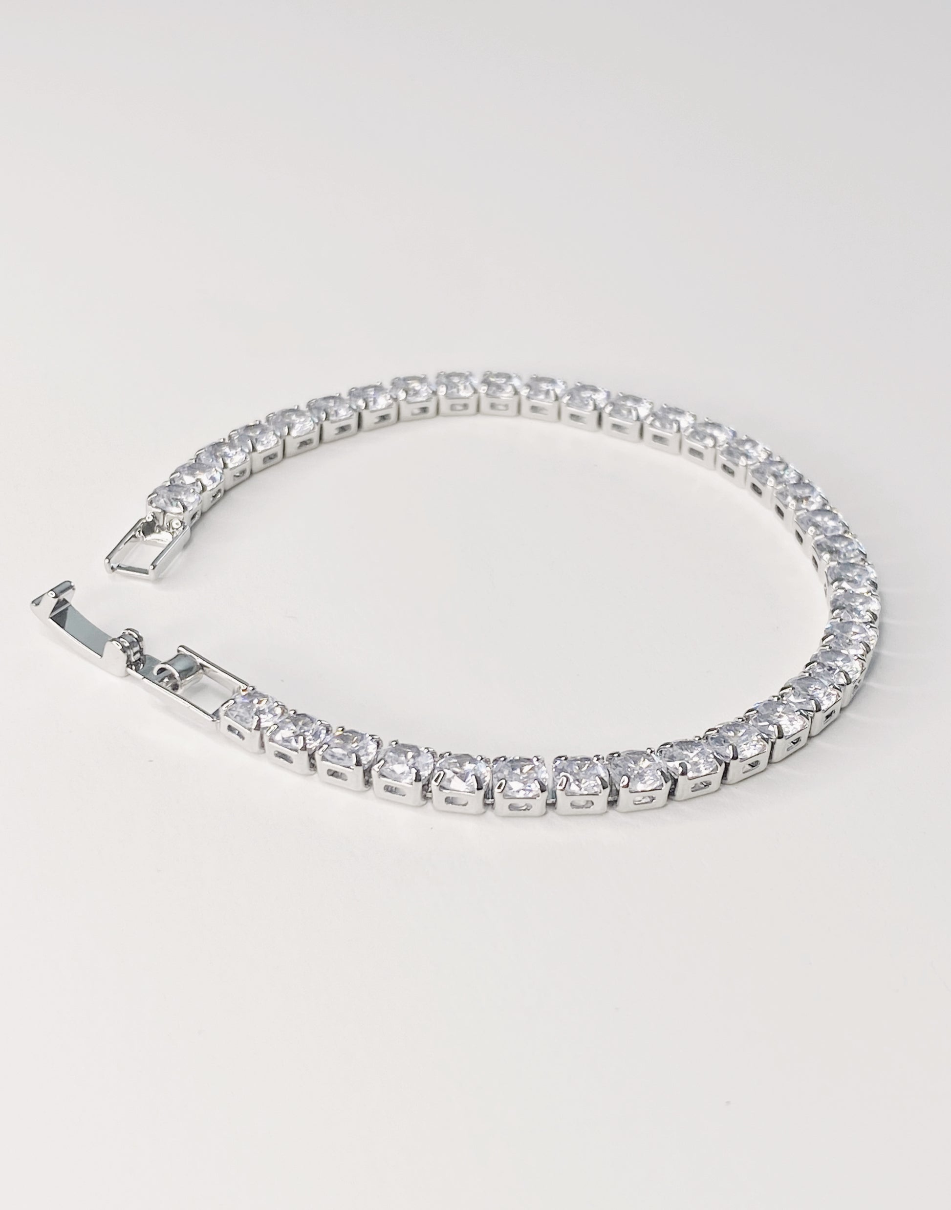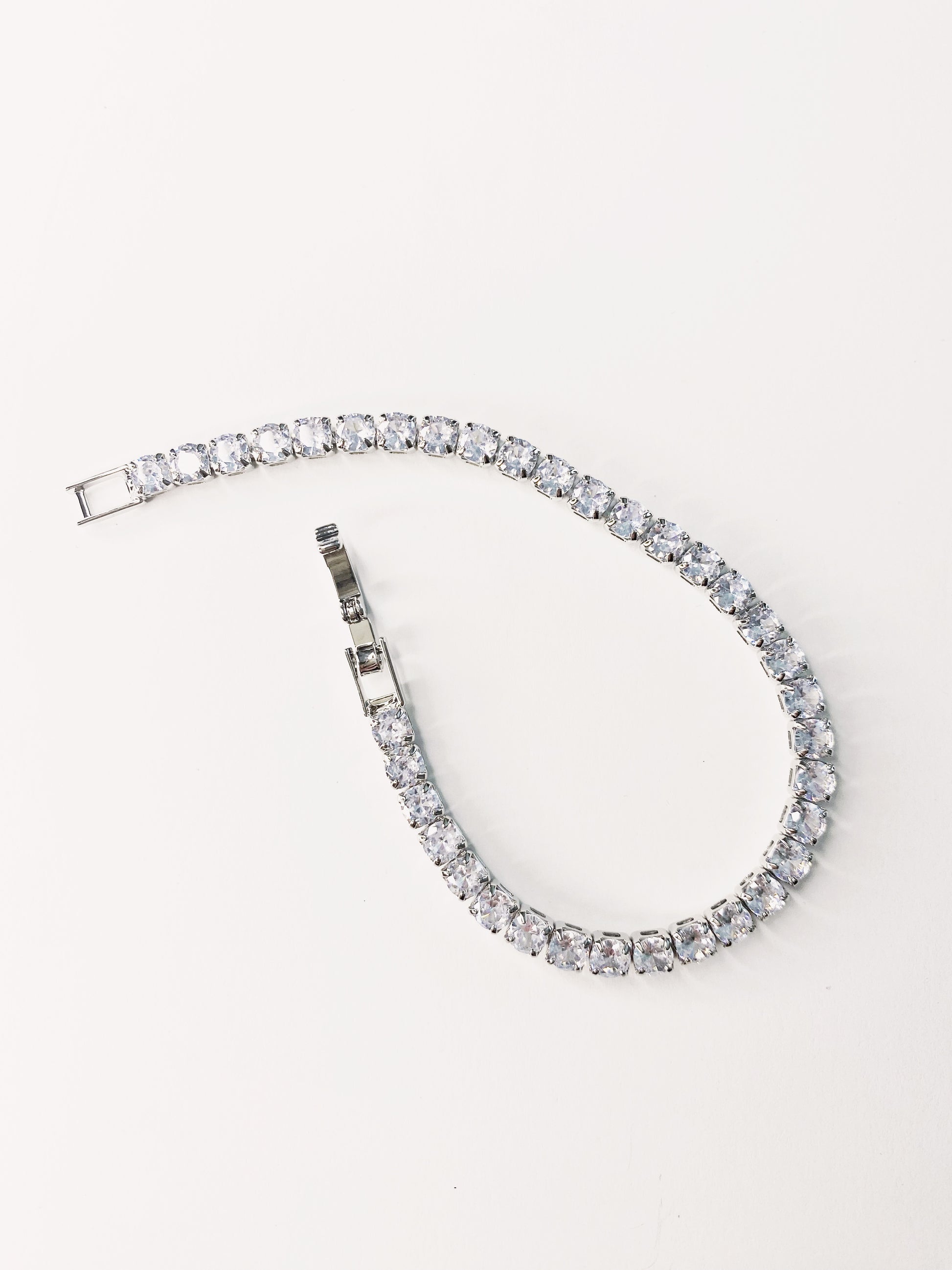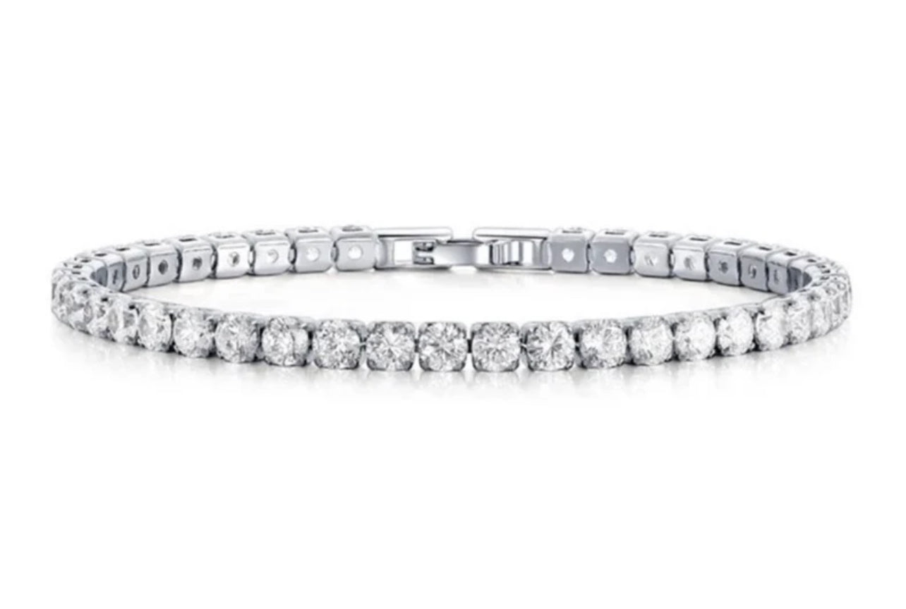 This stunning Silver crystal tennis bracelet adds elegance to any outfit. The intricate twist design and sparkling crystals create a timeless piece that is perfect for any occasion. Elevate your style with this sophisticated bracelet.