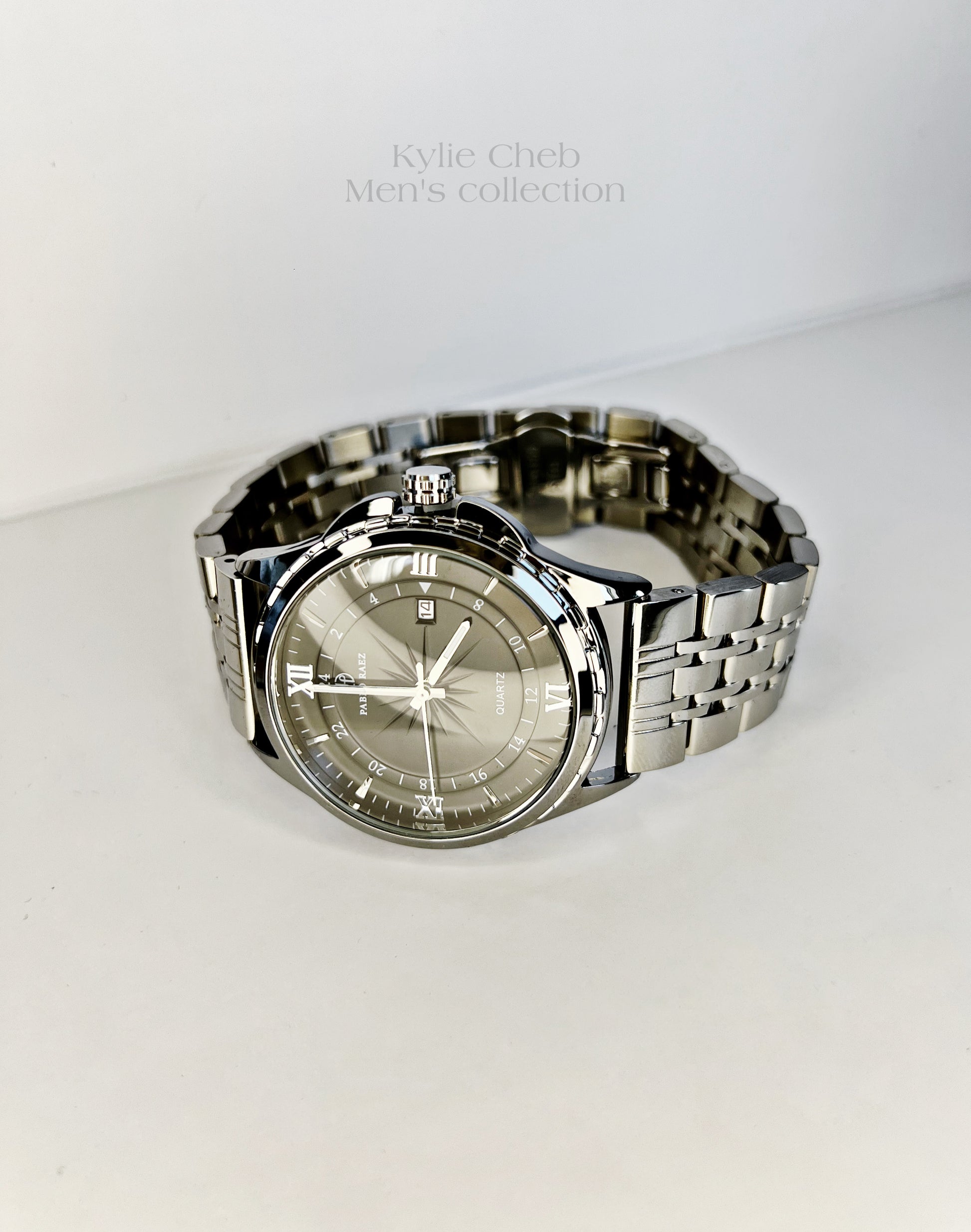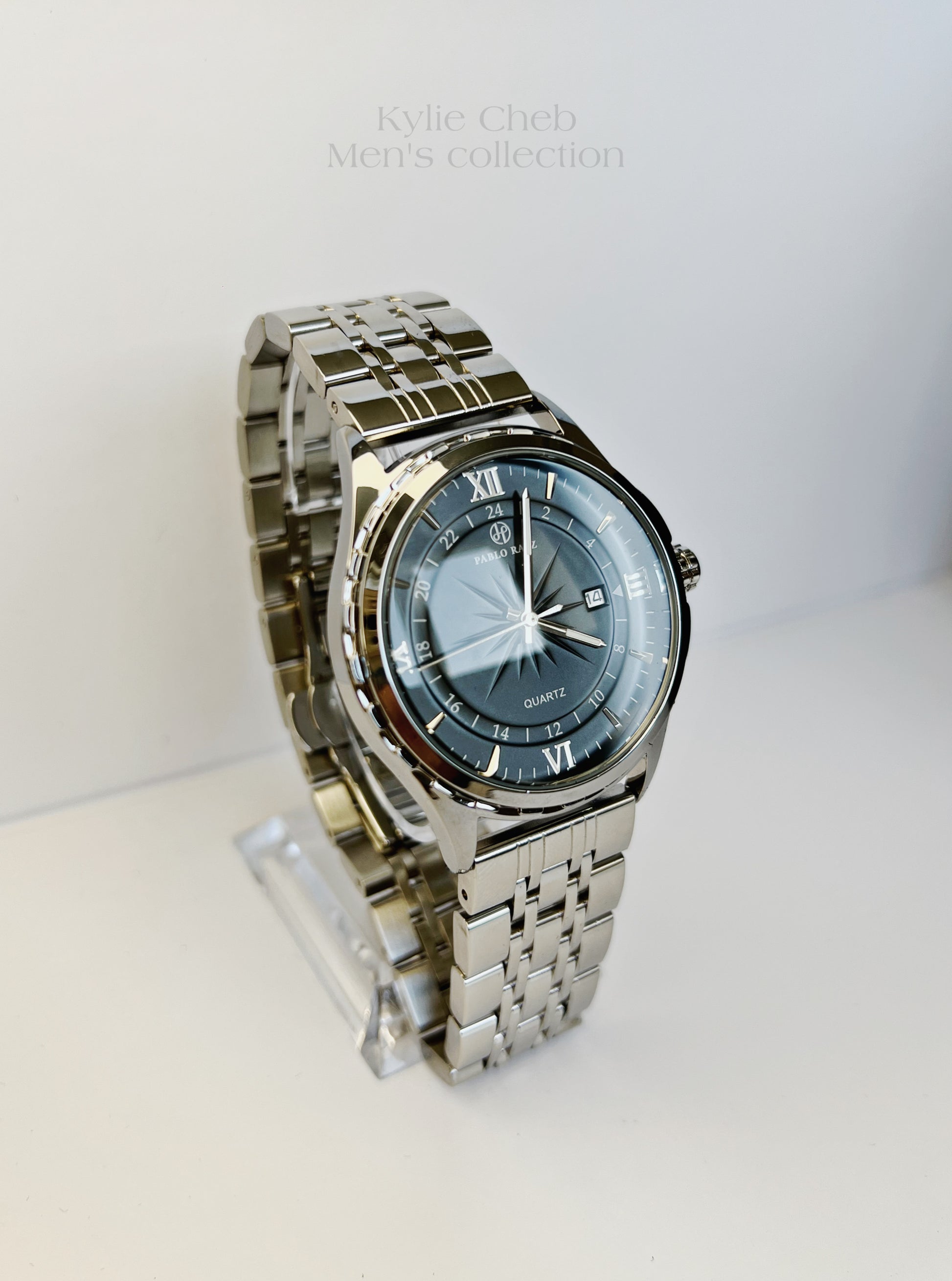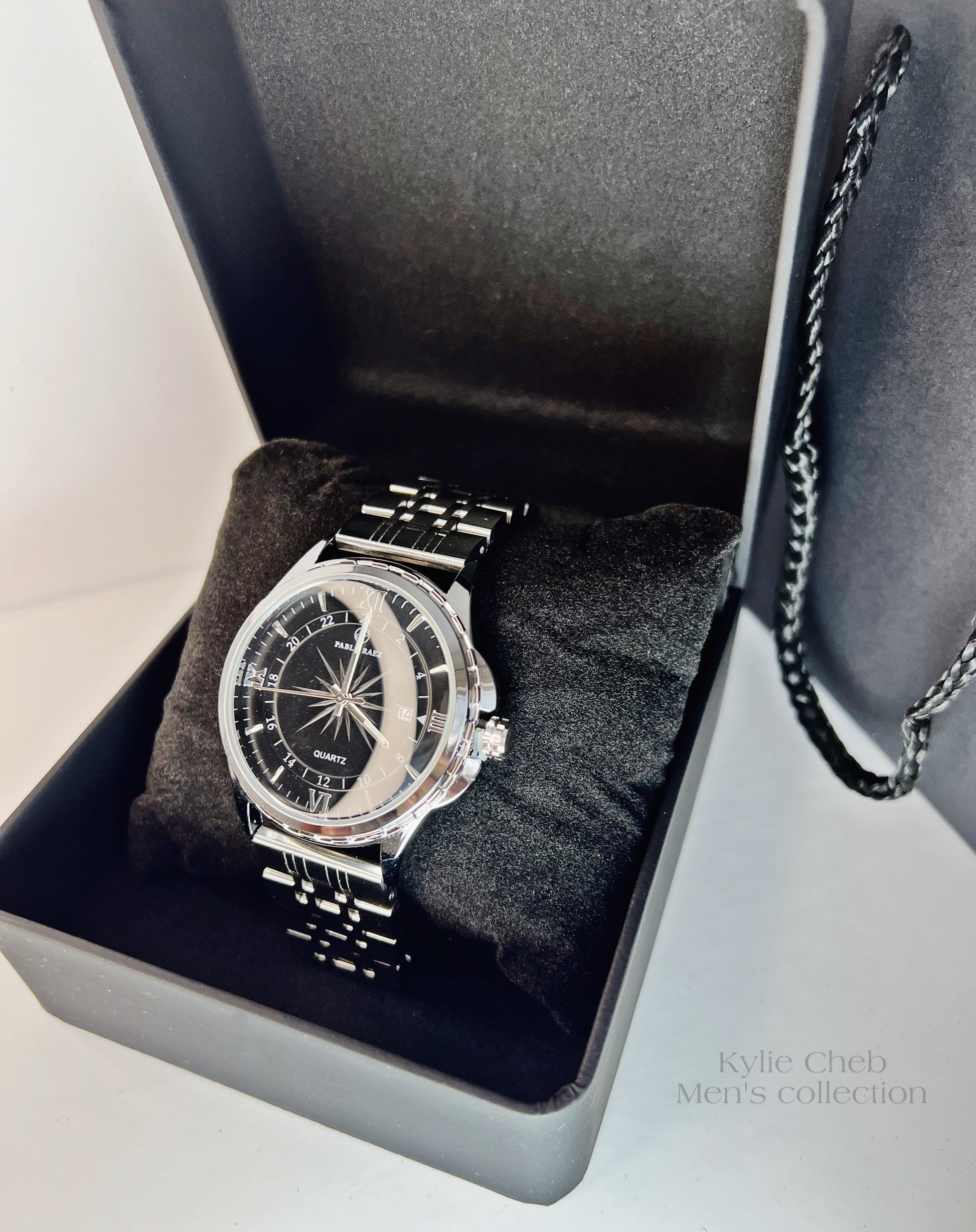 Bold, refined, and unmistakably powerful — Wilhelm v1 stands as the flagship piece of the collection. Its deep black face paired with polished silver stainless steel creates a striking contrast designed for men who appreciate timeless authority. Built with 50M water resistance, this watch is ready for everyday wear and elevated occasions alike.
